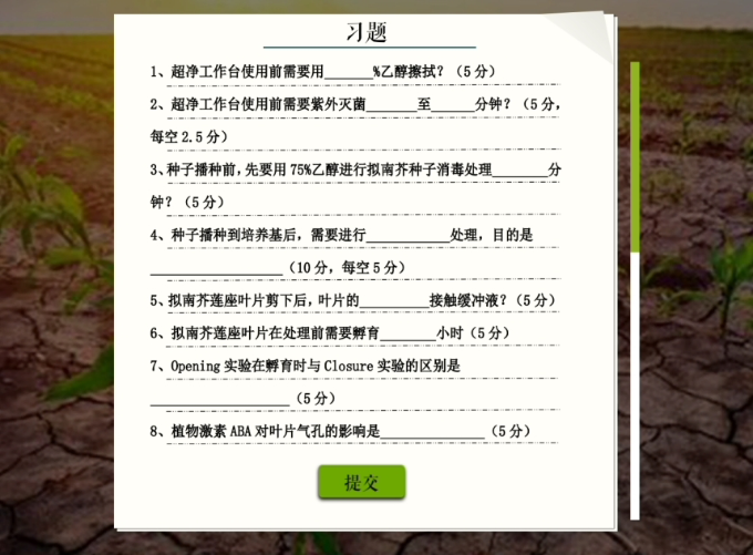③ 考核模式:每个实验模块学习结束后,学生将进行实验基础知识的考核,考核结束后系统自动给出分数。